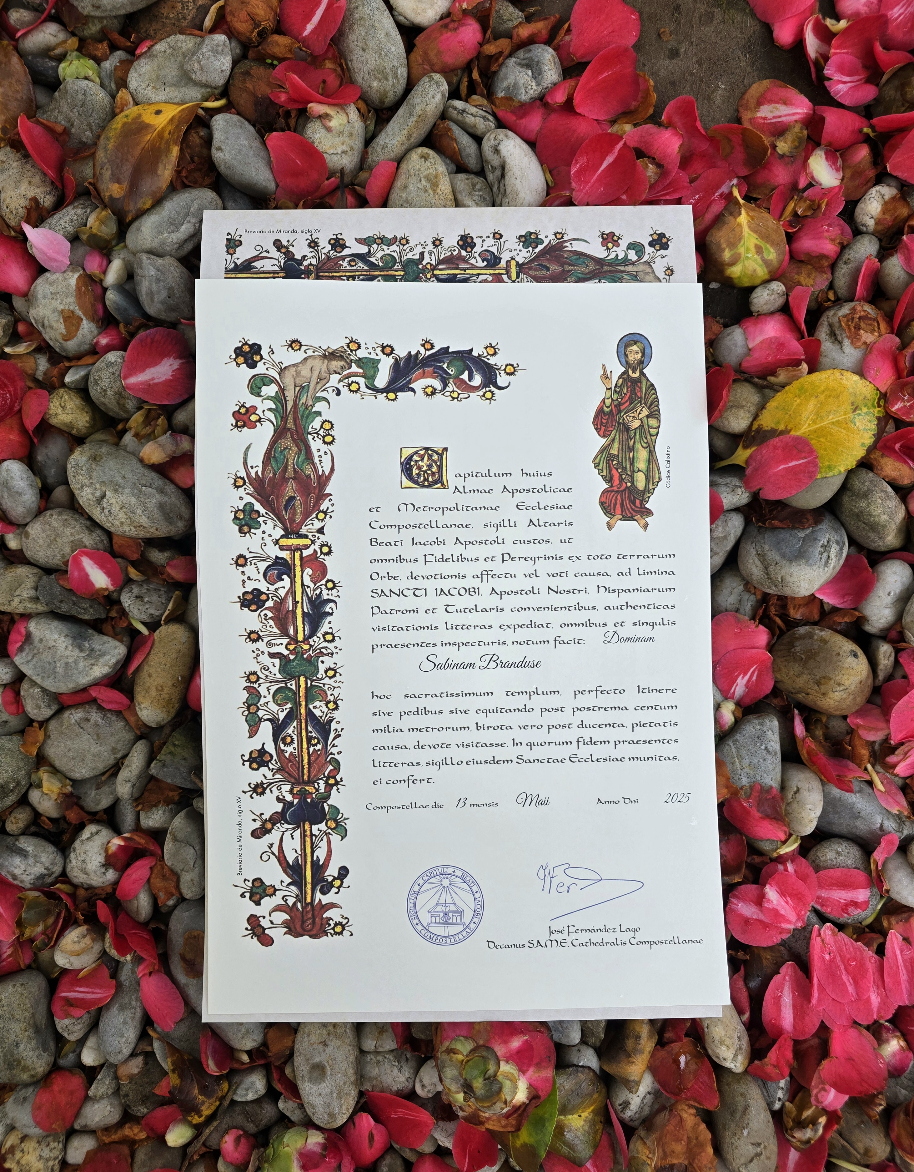 Cu răceala zidului lipită de spate, și o gaură cât o gură țipând în dreptul inimii, ca un tub cu vedere de pe o parte pe alta a trunchiului, am pornit spre biroul care elibera certificatul, Compostela. Un atestat al kilometrilor parcurși în pelerinaj. O diplomă care speram să îmi dezmorțească o emoție, o trăire, de orice fel, doar să fie.